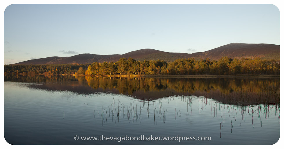 The day we arrived, we took a walk around Lock Morlich, which lies at the foot of Cairn Gorm. As the afternoon drew on, the sun got lower and the light was just beautiful, painting the forest on the edge of the loch with warm, golden colour. The air is so clean up here too, every breath feels healthy and reviving.