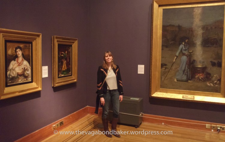 The exhibition I wanted to see was Love and Death, Victorian Paintings from the Tate at Birmingham Museum and Art Gallery {BMAG}. The gallery is famed for its wonderful collection of Pre-Raphaelite art, especially the work of Birmingham born Edward Burne-Jones. Quite a few of BMAG’s Pre-Raphaelite paintings are on tour at the moment with ‘Pre-Raphaelites, Victorian Avant Garde’ at Tate Britain, London {which I visited back in November} so the Tate has loaned some lovely pieces including the magnificent Lady of Shalott, by John William Waterhouse. Another favourite of mine was Waterhouse’s The Magic Circle, I absolutely love this picture, hung next to two paintings by Frederick Sandys, Medea and Morgan Le Fay {these two belong to BMAG, Morgan Le Fay was my absolute favourite as a teen!}. A perfect set of sorcerers! Please excuse the pics, I only had my mobile not my proper camera!