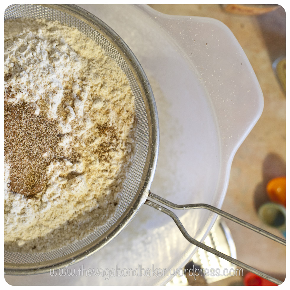 Sift the flours into a large bowl, add the yeast, spices, sugar and salt then use a whisk or your hands to combine them.