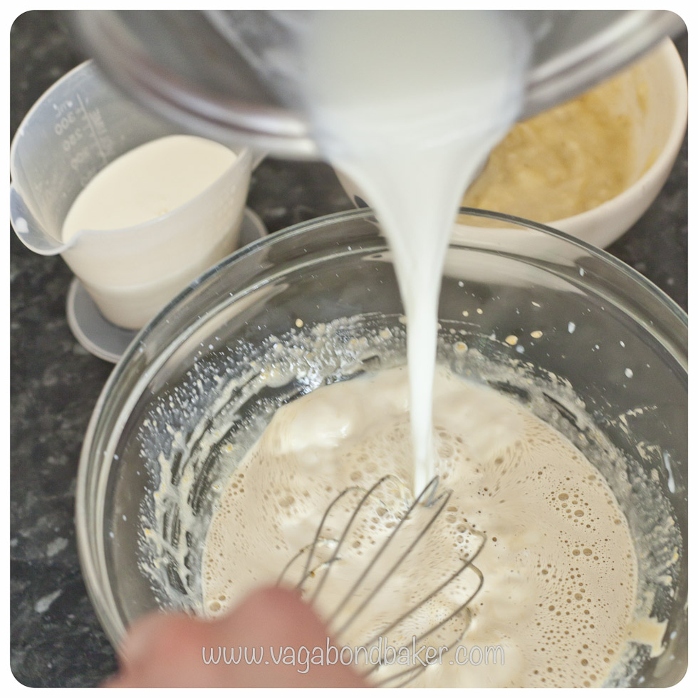 - pour over the boiling milk, stir in then return to the heat and cook until thickened.