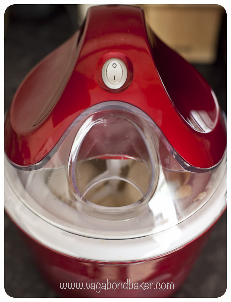 Ok, so this recipe requires an extra bit of equipment, an ice cream maker. They are a fun bit of kit to have tucked in the back of the cupboard and they don’t have to cost a fortune. The inexpensive basic ones {like this one} have an insulated fast-freeze bowl, which you pop in the freezer for the day/overnight. After making the ice cream batter, you fit the frozen bowl to the machine and it churns and freezes it in a few super-fast minutes! The expensive machines, if you fancy a splurge, do the freezing and the churning without having to find space in the freezer for the bowl.