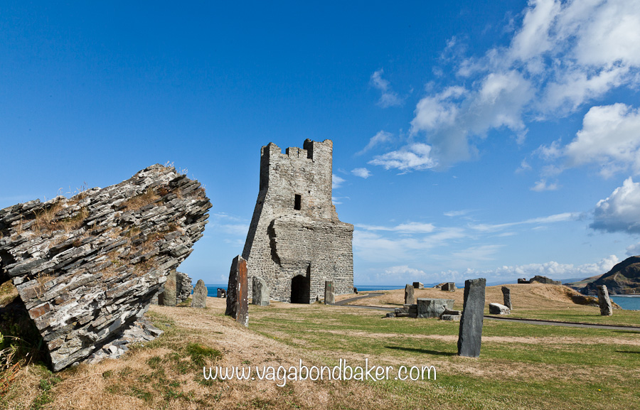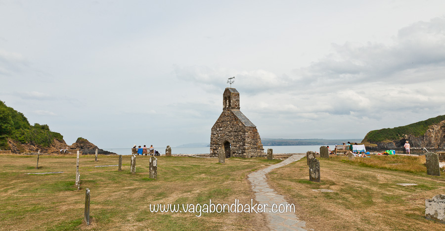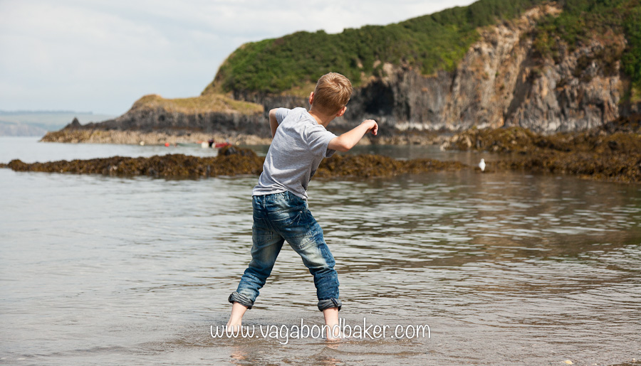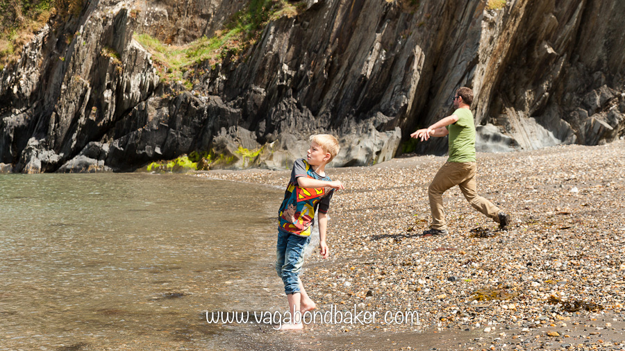 Our final few days in Wales were spent near Fishguard, I have wonderful relatives who live very near to Dinas head, many a childhood summer holiday was spent here. Another farm campsite, this time on the headland with lovely views along the coast was our base. A walk back down the farm track brought us out to the beach at Pwllgwaelod where there is a little pub and a footpath with cuts across the narrow base of Dinas head to the opposite side beach at Cwm-Yr-Eglwys a mile away. This pretty cove is perfect for a swim in the sea and its name translates as Valley of the Church. The church in question, St Brynachs, was mostly destroyed by a severe storm in the 19th Century, all that remains is the belfry wall making it a quaint, memorable place.