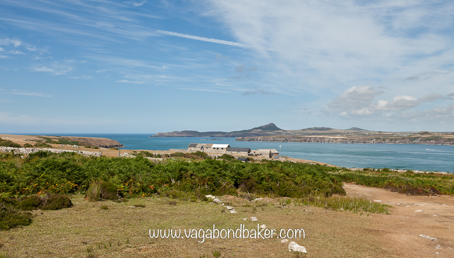 On a particularly sunny day during our time on the St Davids peninsular we took a boat from the St Justinians RNLI Lifeboat station to Ramsey Island, after a fun ride on the local Celtic Coaster bus from St Davids. The island is just a kilometre off the mainland and is owned and managed by the RSPB. An important grey seal breeding site and abundant with birds and other wildlife. We took the 12pm boat across and the four hours we had until the return boat was more than enough to walk around the island on the marked trails. The views from around the island were just superb, it had rained heavily overnight clearing the atmosphere, leaving us with clear vistas. We saw some great birds, the highlights being a number of chough flocks and a few ravens {I love corvids} as well as one gannet, a couple of peregrine falcons and some stonechats. There were many butterflies too. We took a small picnic and found a beautiful spot to take a break, my sticky and sweet energy treats were perfect to keep us on the go.