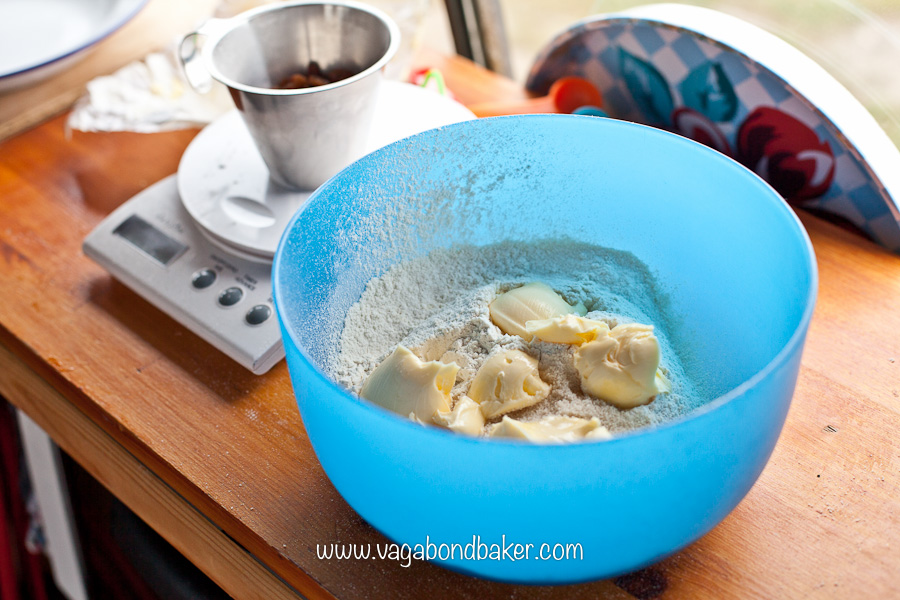- Rub the butter into the flour and sugar