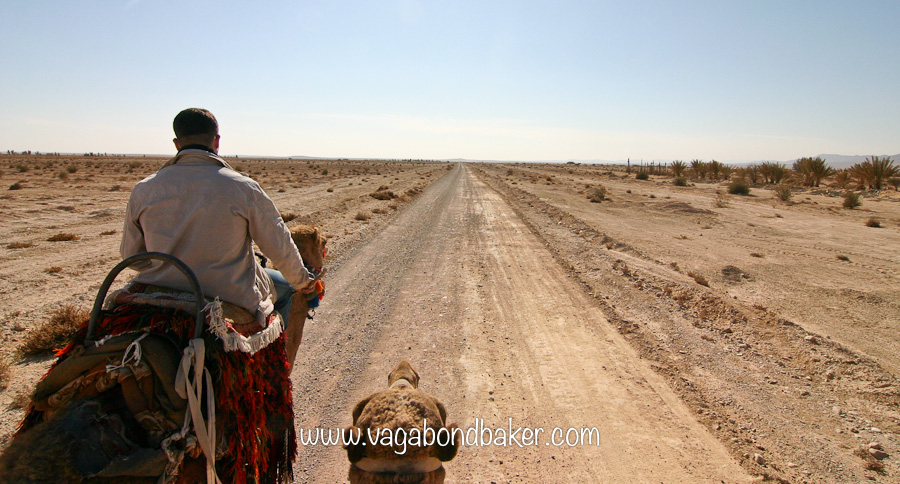 We plodded slowly along, stopping once for a break. One of the guides showed us how fast the camels really could go and gave us an example of how he raced them.