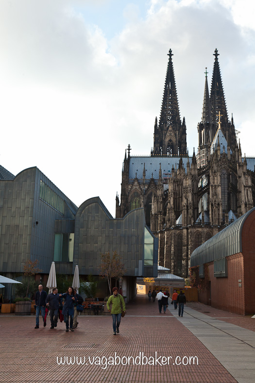 There were some magical luggage lockers at Cologne station, self-service: you put your bags into the machine, coins into the slot then a shutter closes and the luggage disappears into the ground in a secure box. We were very impressed! Free of our bags, we stepped out into the sunshine and the huge, awe-inspiring Cologne Cathedral. This gothic church towers over everything and was one of the few buildings in the city to survive WWII.
