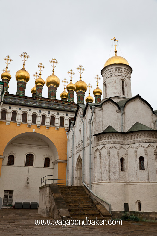 The Kremlin is entered through the imposing Trinity Gate Tower, you pass the Arsenal with its line of cannons before arriving into the central square around which stand the Kremlin’s four main cathedrals.