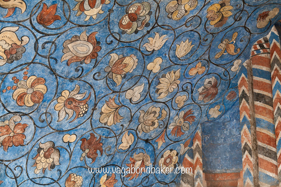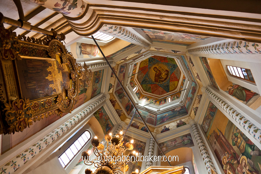 As you get closer to St Basil’s, also known as the Church of The Saviour, the crazy colours and patterns of its domes become more apparent. Frivolous, saturated colour and ice-cream swirls. Inside the pattern is much more organic, the walls are decorated with a simple flower pattern. The cathedral is actually a number of tiny chapels, St Basil’s being one of them. The chapels are linked with dark, arched corridors and narrow spiral staircases.