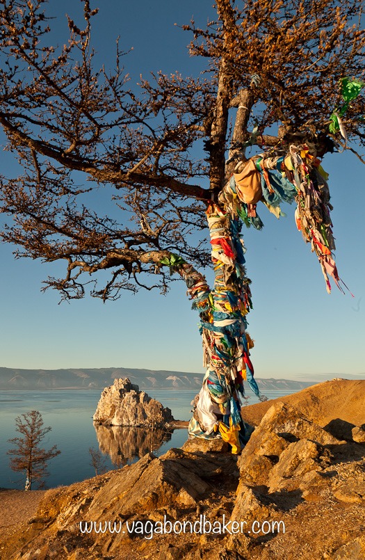 A nearby tree had been transformed into a fabric-bound totem, the island is the spiritual centre of Siberian Buryat Shamanism.