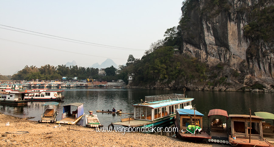 Xingping is hidden among the karst hills on a bend of the serene Li River that flows south from Guilin to Yangshuo. A small, pretty town of curious alleyways and a spectacular backdrop, a 45 minute bus ride from Yangshuo. We checked in to This Old Place International Youth Hostel, into a six bed dorm. The hostel was right near the river and had a lovely terrace overlooking the karsts, perfect for a late afternoon beer to contemplate the view.