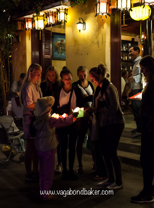As we made our way towards the river on the first night, along the narrow streets strung with lanterns, we became part of a larger crowd heading in the same direction. This crowd had an element of chaos as motorbikes sliced noisily though it, parting it momentarily. Hoi An seemed a hell of a lot busier than I remembered it, but this was Tet {Vietnamese New Year} and the crowds were inevitable.