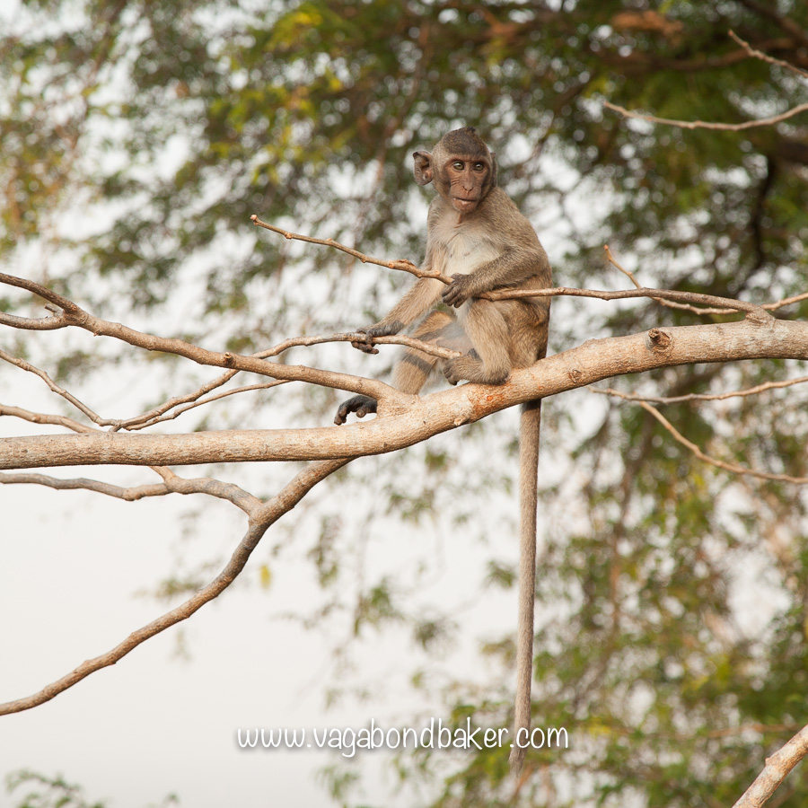 We passed a golden reclining Buddha, resting peacefully under a shelter of names. Further up we watched many macaques tumble and cavort, their sharp eyes always on the look out for a food opportunity.
