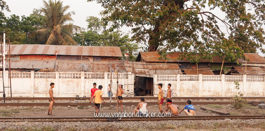 It seemed to take ages for the train to leave Yangon behind, the sprawl of the city stretched out along the train line. A group of boys were playing a game on the side tracks, a curious blend of football and volleyball, in the late afternoon sun.