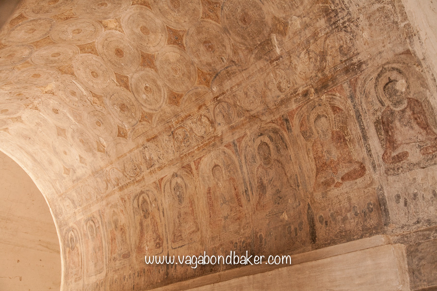 Our first stop of the day was at Gubyauknge which we had to ourselves bar two vendors who were setting out their artwork onto the brick floor. Above their heads the ancient painted ceiling was faded and flaking.