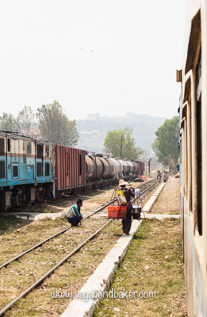 It moved so much faster than any train in Myanmar we’d previously been on, the speed seemed to amplify the bumps and rocking motion. We were violently bounced in our seats as the train hurtled along toward Mandalay: it didn’t feel safe at all!