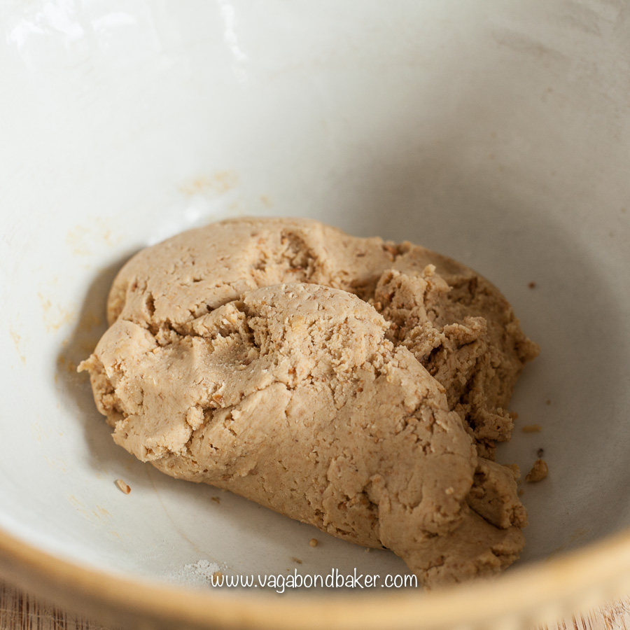 - It should now blend to a paste. Transfer to a mixing bowl and add an egg yolk then sift in the flour, baking powder and sea salt. Mix to a dough with a wooden spoon, bringing it together with your hands. It should be a consistency you can roll out, if not add a bit more flour.