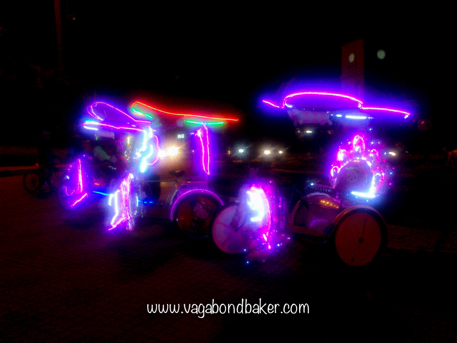 Probably, the most touristy thing you can do in Melaka is take a trishaw ride. These bicycle rickshaws line up in front of Christ Church and are magnificently, kitsch-ily bedecked with artificial flowers, flags and cuddly toys, one even advertised free WiFi, I’ve no idea how that worked!
