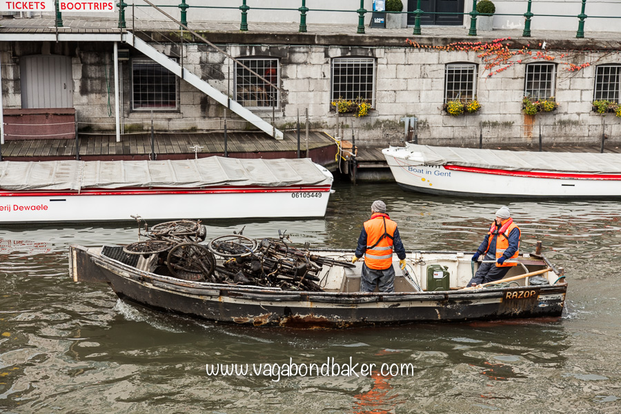 Ghent is a university city and one of the more famous traditions, Fabi explained, is for students to toss their bike into the canals when their studies end (Ghent is a city of cyclists) meaning the canals are full of rusty bikes.