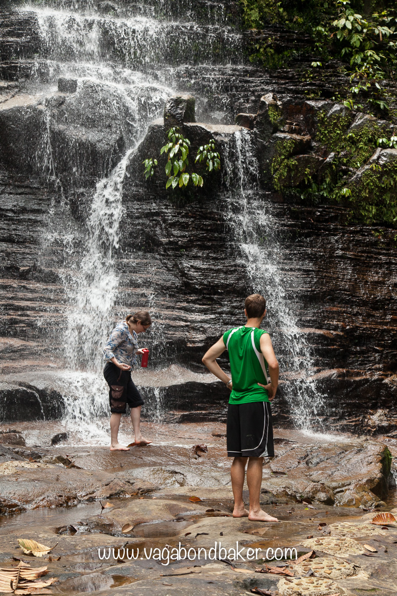 While we were resting we happened to spot these tiny frogs, just going about their business, ahem, out on the edge of the lower waterfall. We didn’t think we’d see any frogs!