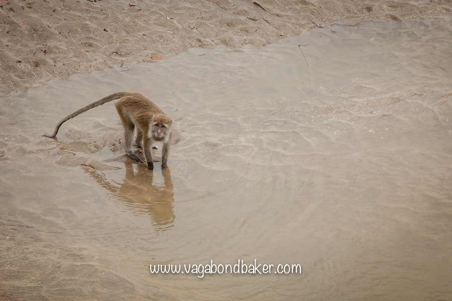 Eventually we arrived at the mangroves where the ferry had dropped us off at the start, the tide had retreated in that time and now cheeky macaques were hunting for snacks in the mud.