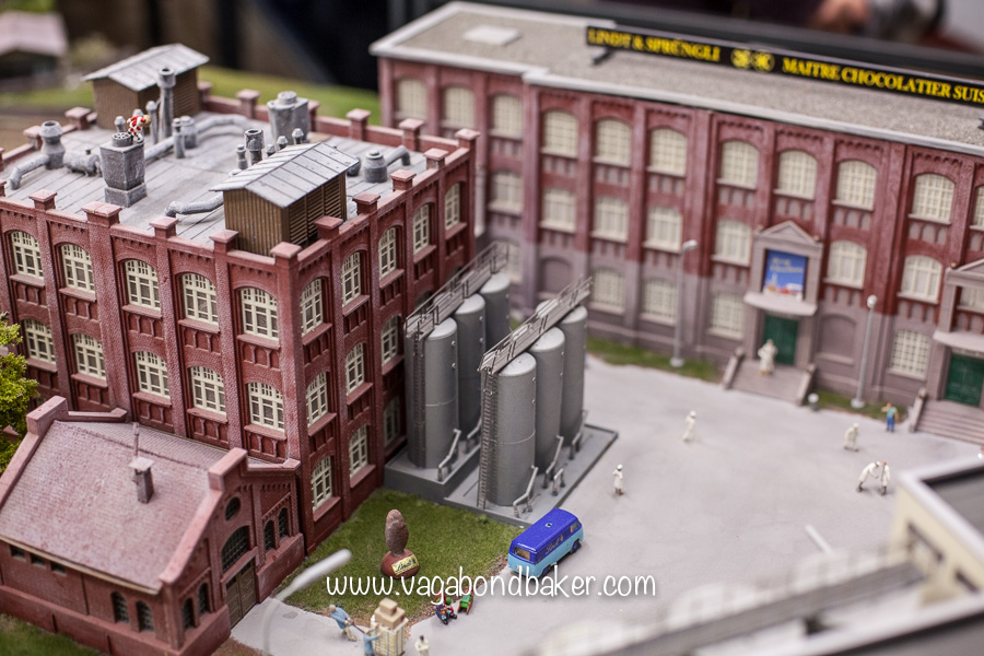 The models are interactive, little buttons dot the barriers allowing you, the visitor, to make magic happen: set cable cars in motion, make cranes lift, hot air balloons fly, trumpeters trump, rock stars perform, and produce your very own bar of chocolate!