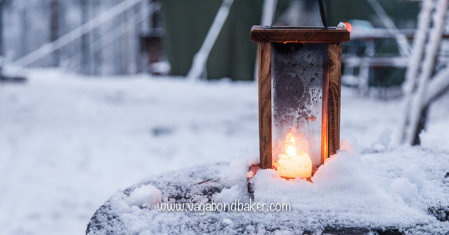 We walked and walked, passing the occasional small lake, eventually we came to a small ‘village hall’, with an adjacent sauna. Candles were burning and fairy lights twinkled, we thought there was going to be a children’s performance later on.