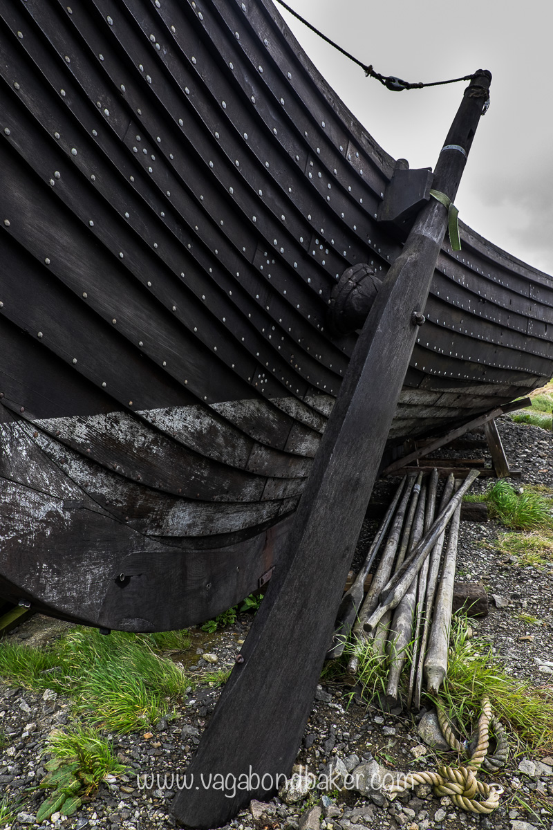 On the roadside heading north into Haroldswick there is a replica Norse Longhouse and ship. The dark wooden boat is a full-sized replica of the Gokstad ship found in Norway and it cuts a fine silhouette as you approach the bay.