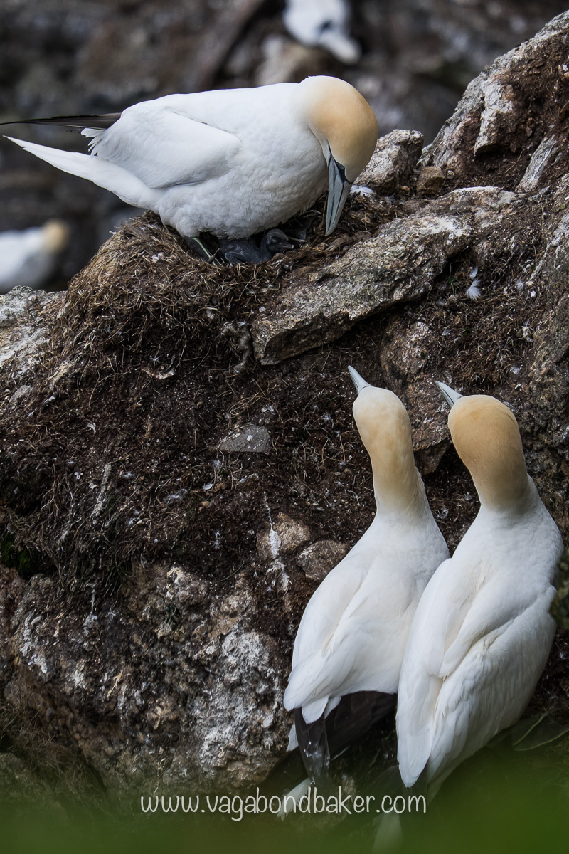 Gannets, Britain’s largest seabird, build their geometrically spaced nests using their own guano mixed with seaweed. As you can probably imagine, the smell is very pungent, even on a wild, windy summer afternoon.