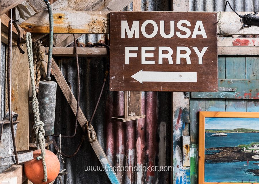 Our final week had begun by visiting Mousa. We woke to a bright sunny morning and joined the small queue waiting on the pier at Sandsayre for the Mousa Ferry. There is a little waiting room next to the pier with has an adjoining room set out as a museum complete with the original Mousa ferry – considerably smaller than the current boat.