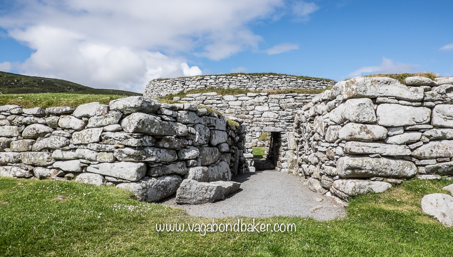 A long straight path leads down to the broch from the road, this is a two-thousand year old ruin in a semi-urban setting, a stone’s throw from Tesco yet with the serene Clickimin Loch lapping at its stony feet.