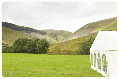 The wedding reception was held at the Cross Keys Temperance Inn near Sedbergh, in a marquee overlooking Cautley Spout Waterfall, a beautiful location.