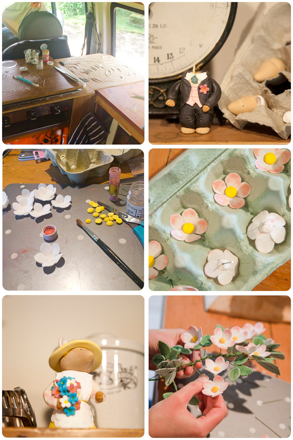 Most of the mouse making and flower making happened in the van, as I had all my tools to hand and it was a pet free, therefore fur/hair free, environment.