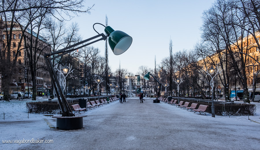 The Lights were displayed on a marked route through the centre of the city, some were projected onto the facades of iconic buildings like Helsinki Cathedral or were free-standing artworks like the huge angle-poise lamps along Esplanadi.