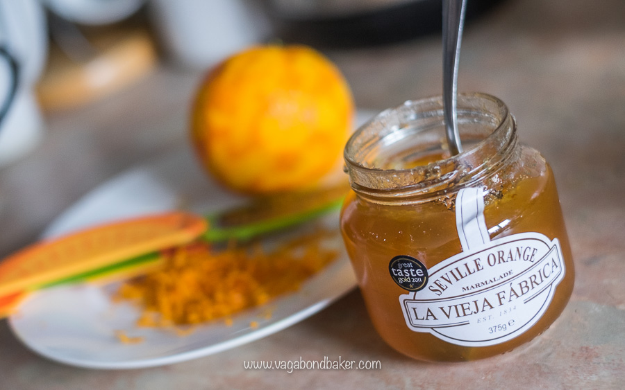 I’ve used a fruit-rich Seville orange marmalade in this recipe instead, it makes it much more homebaker-friendly: I found an excellent 40% fruit Spanish marmalade in one of the supermarkets here in Dundee, which has been perfect for the job.