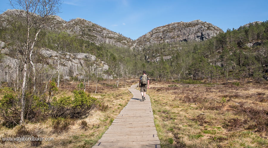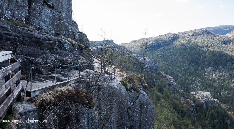 It’s a final climb, and a short stretch on a precipitous wooden walkway, before Preikestolen comes into view.
