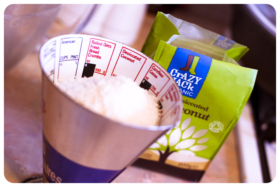 - 200 g {2 cups } unsweetened desiccated coconut