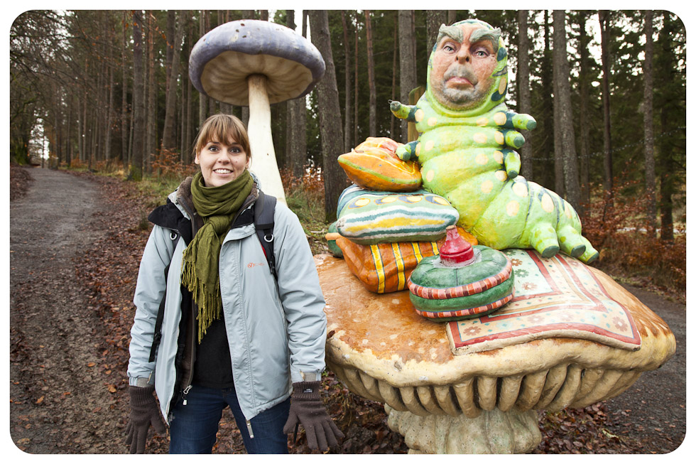 The weather was pretty poor too, it was wet and cold but we made the most of it and got some fresh air! There were a few ‘mushrooms’ dotted about, like this one topped with The Caterpillar, looking suspiciously like Timothy Spall.