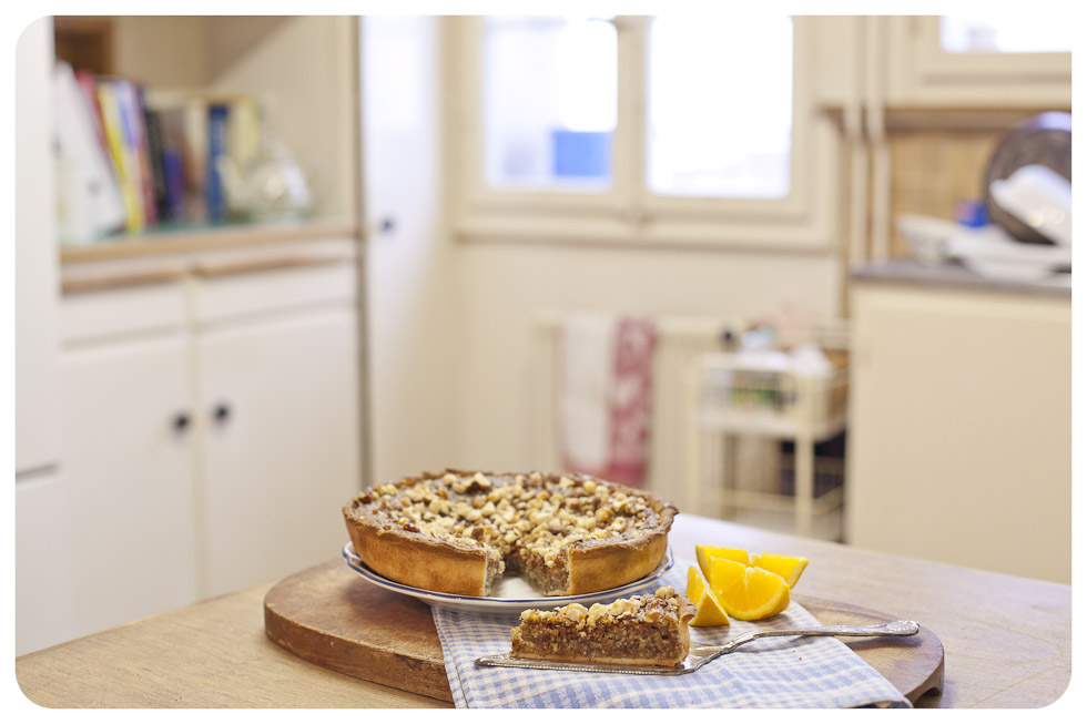 This very delicious tart is a speciality of the area where we are staying in Switzerland. Originating in the Canton of Bern, the tart is made from ground hazelnuts and bitter orange conserve, yes that’s right folks- orange marmalade {which I adore}.