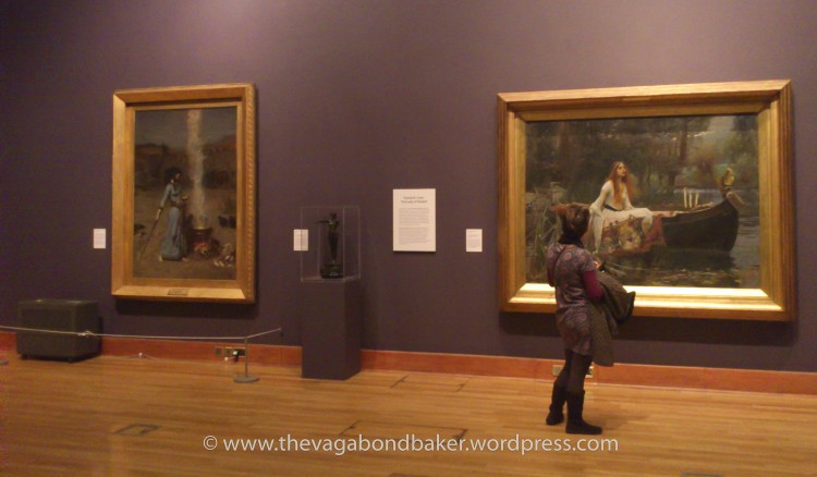 The exhibition I wanted to see was Love and Death, Victorian Paintings from the Tate at Birmingham Museum and Art Gallery {BMAG}. The gallery is famed for its wonderful collection of Pre-Raphaelite art, especially the work of Birmingham born Edward Burne-Jones. Quite a few of BMAG’s Pre-Raphaelite paintings are on tour at the moment with ‘Pre-Raphaelites, Victorian Avant Garde’ at Tate Britain, London {which I visited back in November} so the Tate has loaned some lovely pieces including the magnificent Lady of Shalott, by John William Waterhouse. Another favourite of mine was Waterhouse’s The Magic Circle, I absolutely love this picture, hung next to two paintings by Frederick Sandys, Medea and Morgan Le Fay {these two belong to BMAG, Morgan Le Fay was my absolute favourite as a teen!}. A perfect set of sorcerers! Please excuse the pics, I only had my mobile not my proper camera!