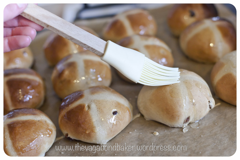 As soon as the buns are taken out of the oven, brush the sugary glaze over them with a pastry brush. Leave to cool but make sure you devour one while still warm!