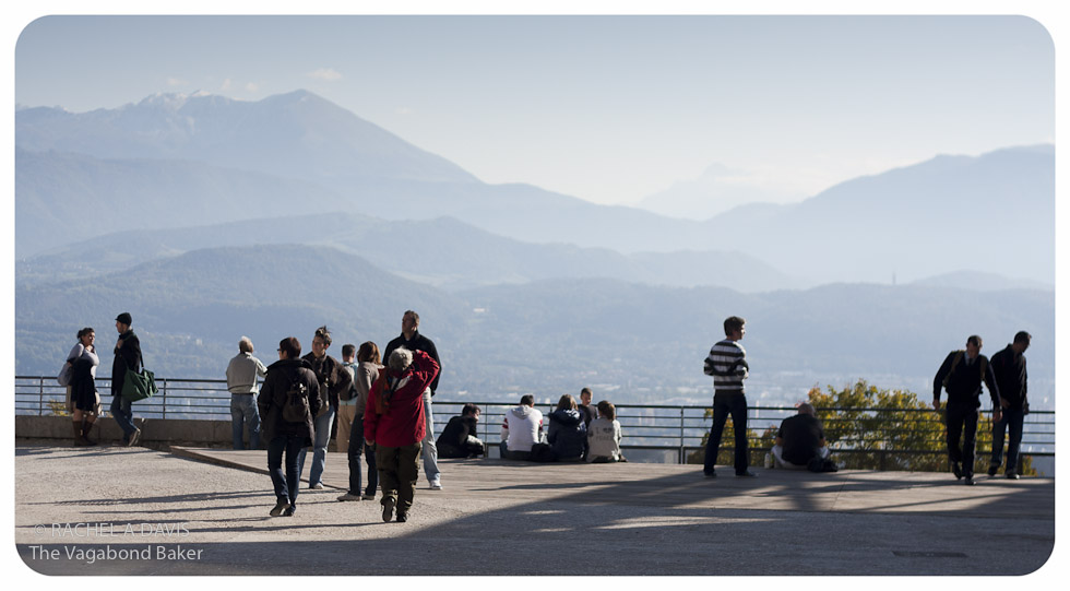 The views out from the Bastille are breathtaking, well worth the climb: looking beyond the labyrinth of the city to the mountains in the distance.