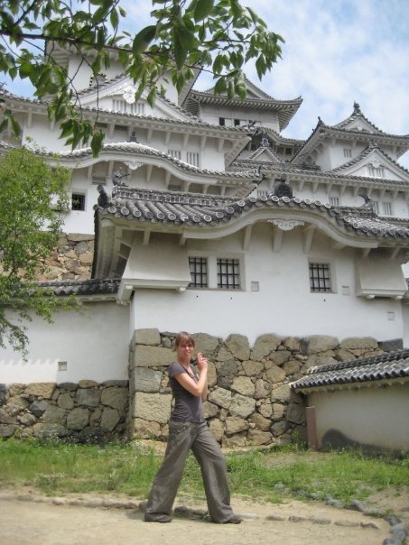 - A particular favourite of mine, posing in front of Himeji-jo, an awesome 17th Century castle in Japan. Used as the location for the Ninja training school in You Only Live Twice {1967}