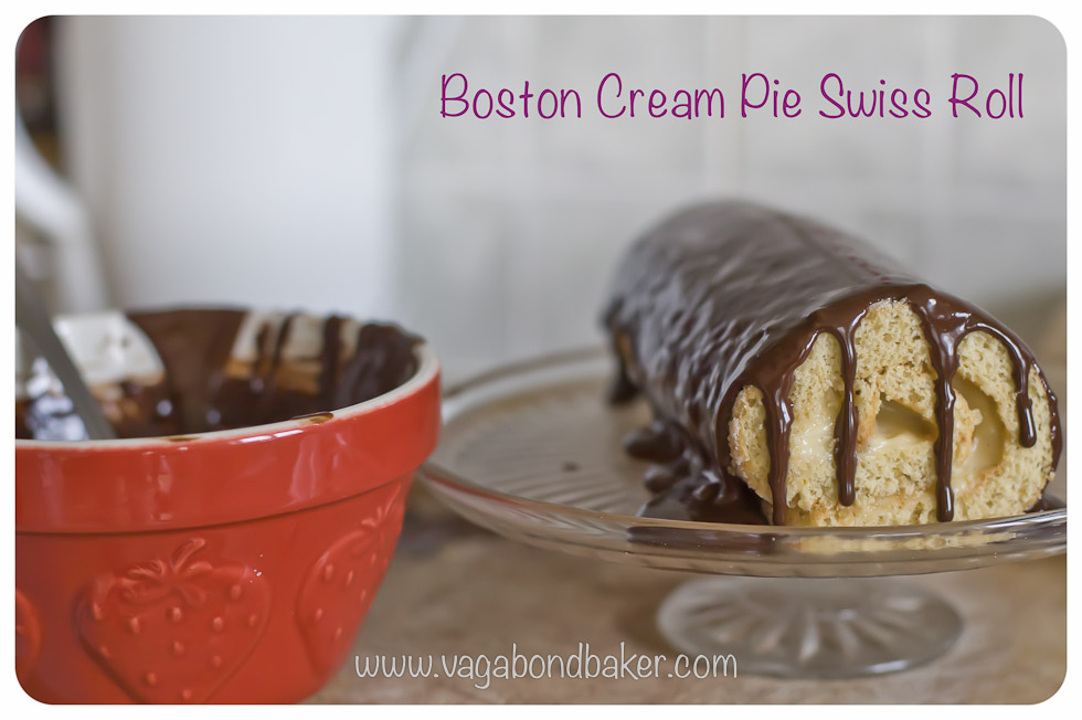 I just had to revisit my boston cream pie cupcakes at some point. When there is custard involved things are never too far from my mind. I had a thought, maybe it was a custardy dream, that I could convert it to a swiss roll, I could visualise it, luscious with chocolate ganache.