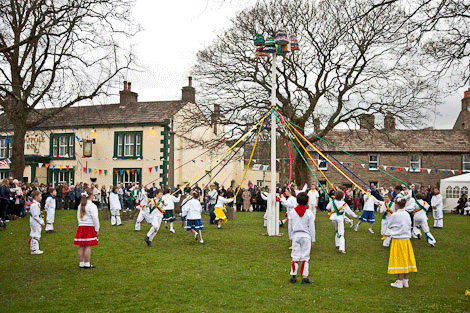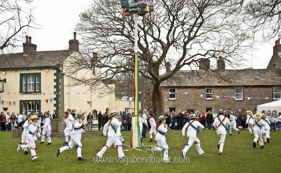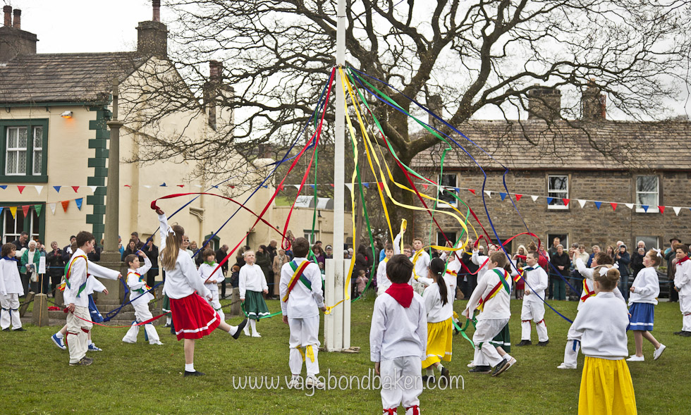 There is a May Day Gala on the first saturday in May at Long Preston, a nearby village, so we took the afternoon out to go and enjoy it. A Maypole stands on the village green and once a year is hung with ribbons for the Maypole dance. The local village children take part, dressing in simple costumes, the girls in colourful skirts and the boys in white with sashes and bells.