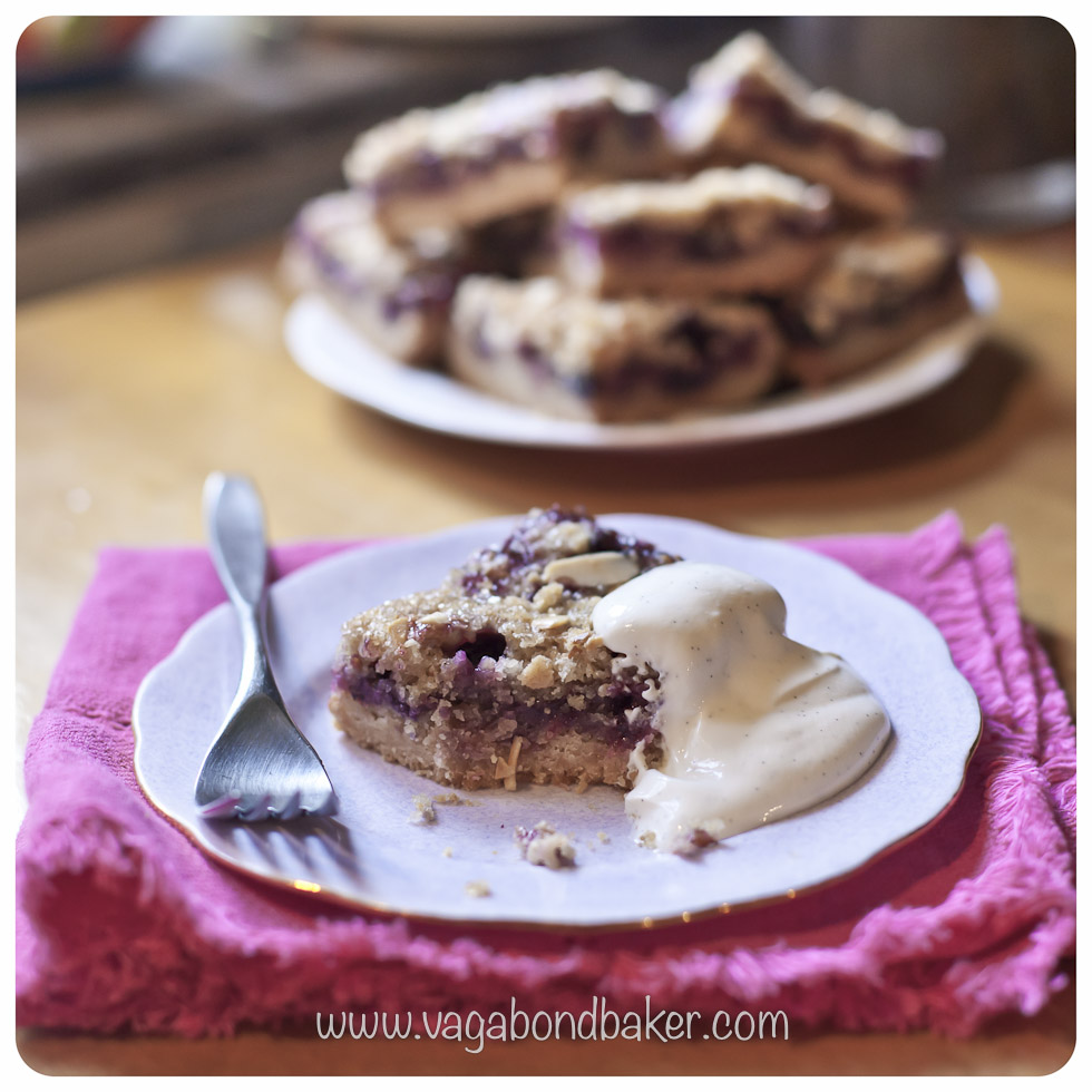 Naw!!! Howie is so, so gorgeous! I’d love to have him as a companion in my kitchen. Unfortunately my husband and I live in a teensy apartment at present, so we don’t think it’d be fair to coop up a poor animal with us too 🙁 Your slices look incredible. I concur, the crumble is the part I always look forward to the most… whether it be on a coffee cake, fruit crumble, slice, whatever! I’d love to make these. Delicious! Thanks for sharing this gorgeous post x