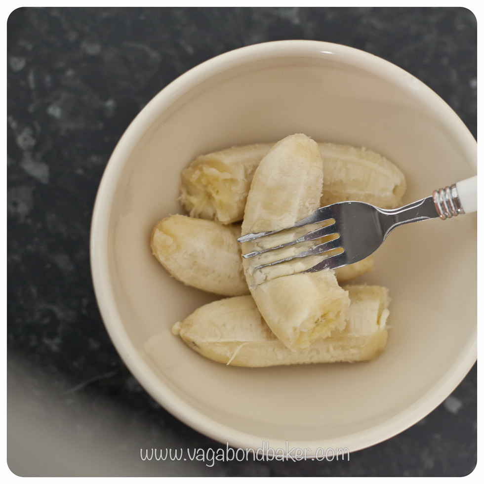 Stir in the mashed bananas and the cream. This will cool it down somewhat. Refrigerate until completely cold.
