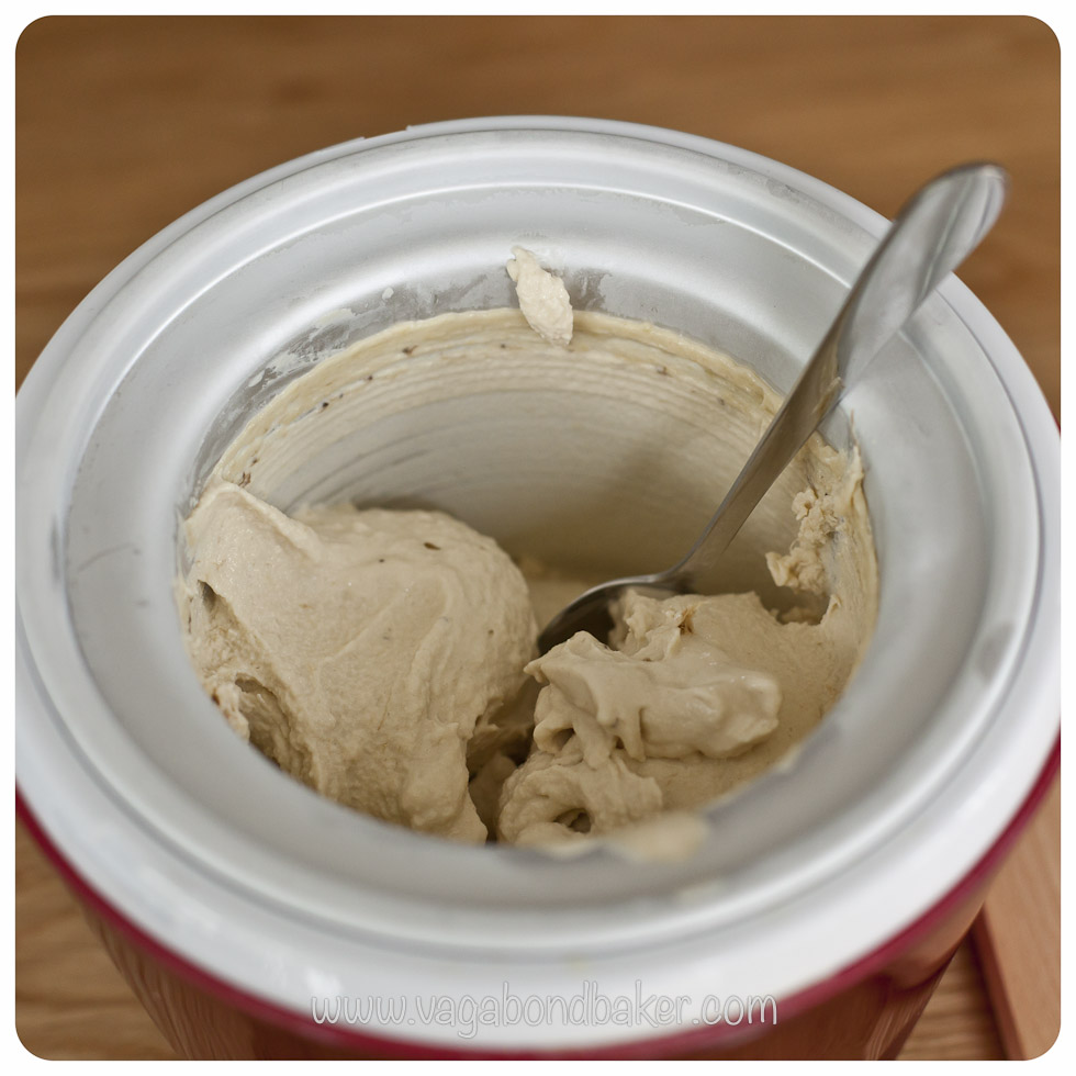 Once cold, add to your ice cream machine as per the manufacturer instructions. Churn until your desired ice cream consistency. You can achieve a stiffer ice cream if you prefer by transferring it to a container and popping it into the freezer for a few hours.
