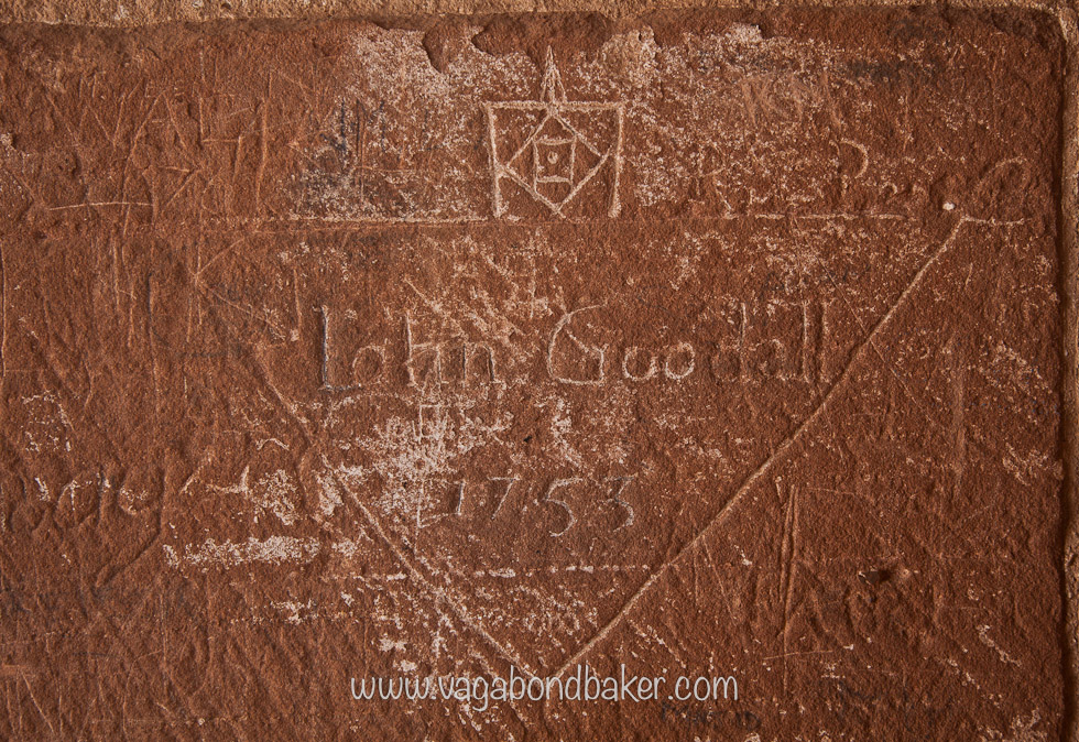 - Some old graffiti! 1753, John Goodall got out his penknife and left his indelible mark ornately on the ruined castle.
