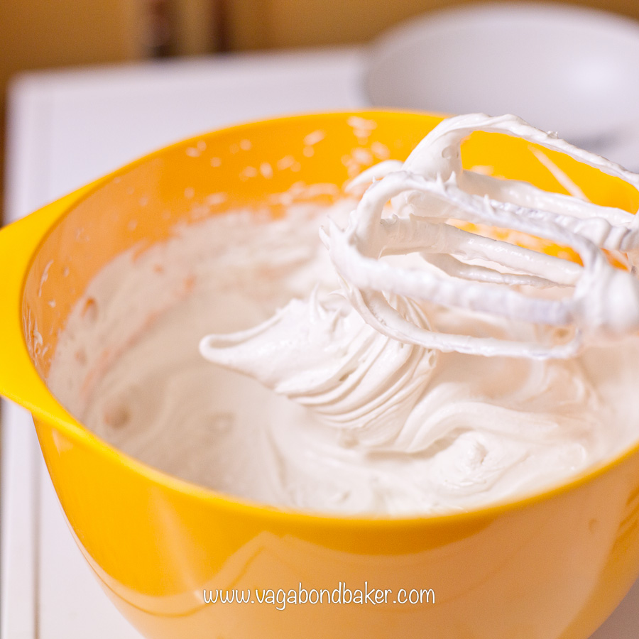 - Beat the eggs to stiff peaks then slowly add the sugar in spoonfuls
