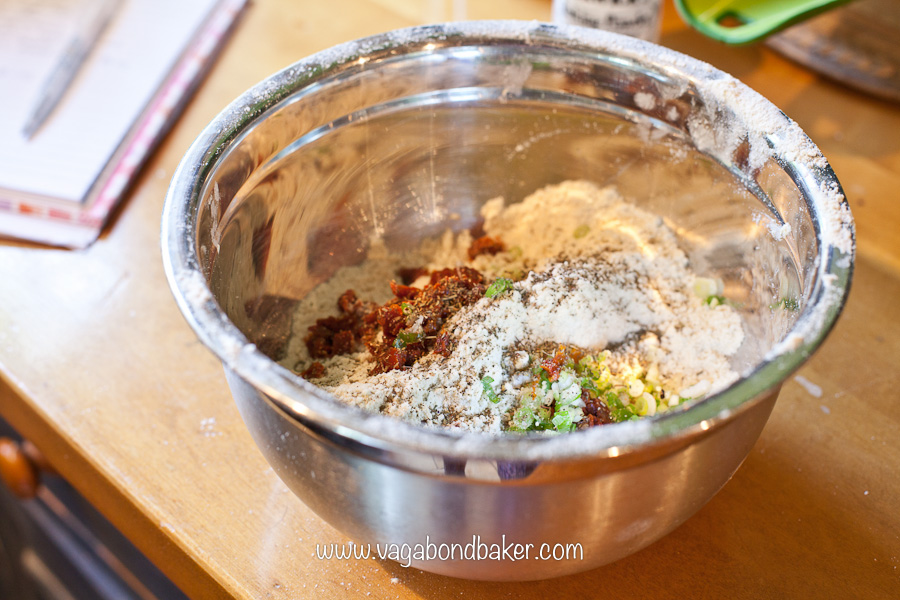 I came up with sun-dried tomatoes, they are so packed with taste that they would surely fill that savoury flavour void. I flung in some dried herbes de Provence for good measure and came up with a deliciously savoury vegan scone.